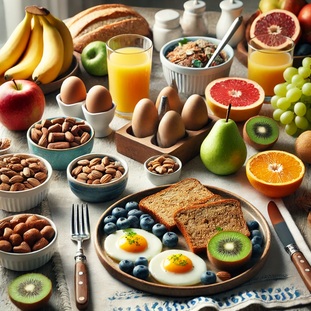 혈당을 안정적으로 유지하려면 아래와 같은 음식을 포함한 균형 잡힌 아침 식사가 중요합니다: